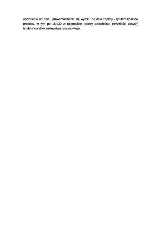 Sąd uwzględnił jednak przy tym zarzut zatrzymania podniesiony przez bank w toku procesu, uzależniając zapłatę ww. kwot od zapłaty przez Klientów kwot po 120 000 zł na rzecz banku albo zabezpieczenia roszczenia banku o zapłatę tych kwot. Bank został w całości obciążony kosztami procesu w wysokości po 16 497,00 zł na rzecz obu Klientów wraz z ustawowymi odsetkami od dnia uprawomocnienia się wyroku do dnia zapłaty.